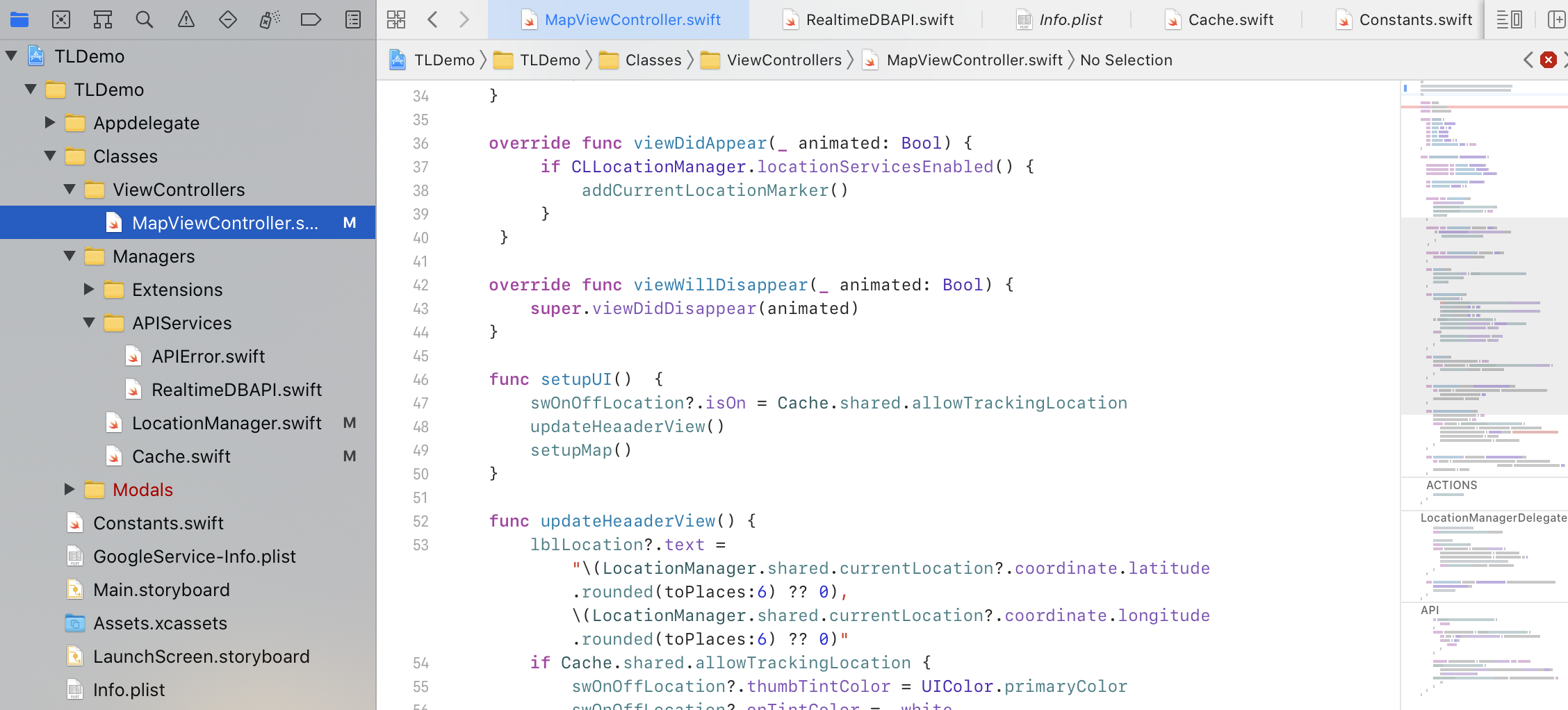 There are two main components to the app. Location tracking is handled in Classes/Managers/LocationManager.swift while the main screen displaying your location and web service that updates the database is in Classes/Viewcontrollers/MainViewController.swift. To get started, clone the gps_tracking_app project from my Github repository here and open TLDemo.xcodeproj in Xcode. All the code is available under a permissive MIT license here and you are free to use it in part or in whole for your own projects.