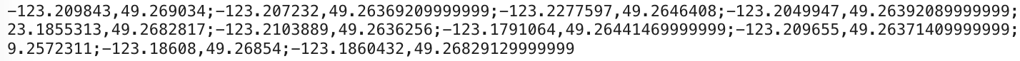 ?.join(";")}`;With the coordinates array (here's an example of what it looks like) now in place,